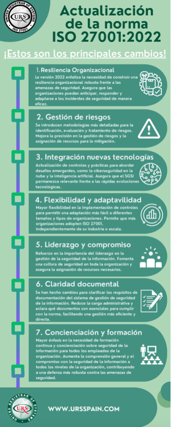 Claridad en la Documentación y Concienciación sobre la Seguridad La clarificación en los requisitos de documentación y el renovado énfasis en la formación y concienciación sobre la seguridad son aspectos destacados en esta actualización. Estos cambios buscan simplificar la gestión del SGSI y mejorar la comprensión y participación de todos los niveles de la organización en la protección de la información.